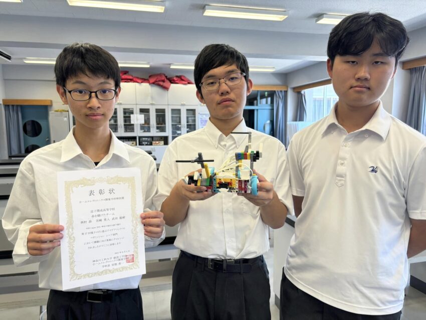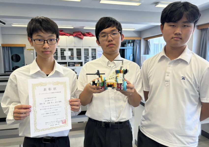 物理化学部は三浦君が所属する自然研究班の他に、ロボットコンテスト班、物理化学班、理科工作班がありますが、ロボットコンテスト班の生徒たちもこの夏に大きな賞を受賞しました。