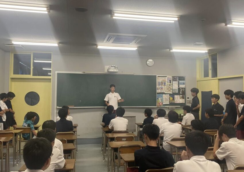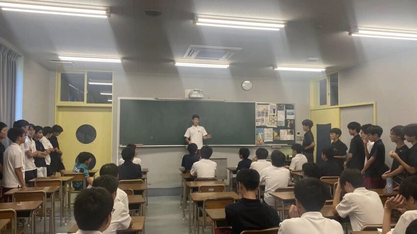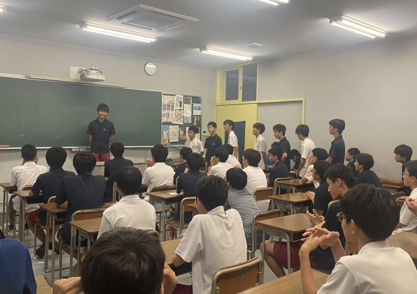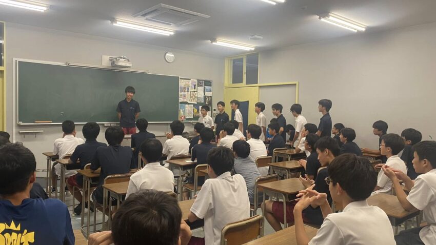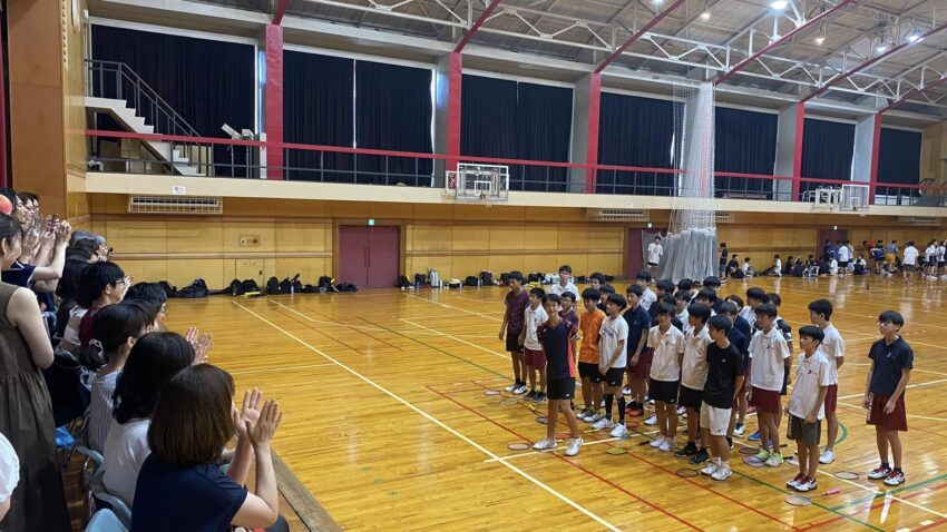 夏休みの終盤、保護者の皆様と共に、中3送別試合の時間を過ごしました。顧問の先生に挑む試合、後輩との試合の中でアドバイスを授ける試合。後輩に言葉を送る彼らを見て中学3年間の成長を感じました。彼らの高校での活躍が楽しみです。