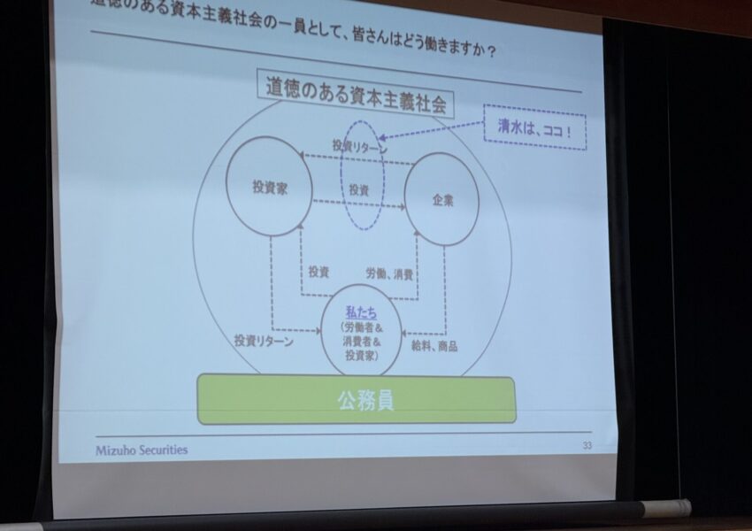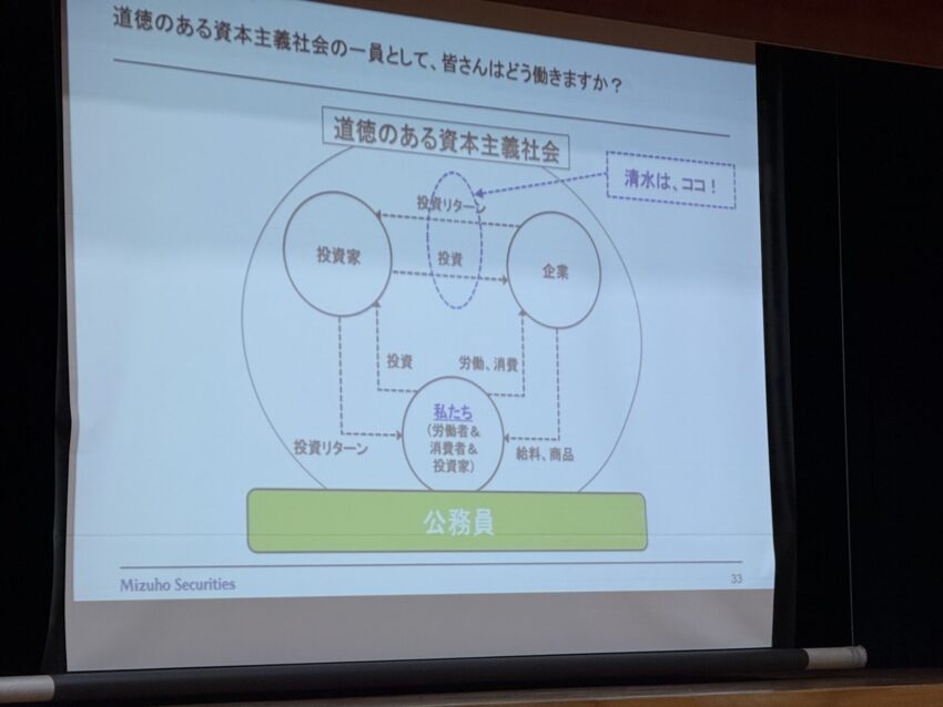 みずほ証券でサステナビリティ・エバンジェリストを務めていらっしゃる清水大吾さんに講師としてお越しいただきました。