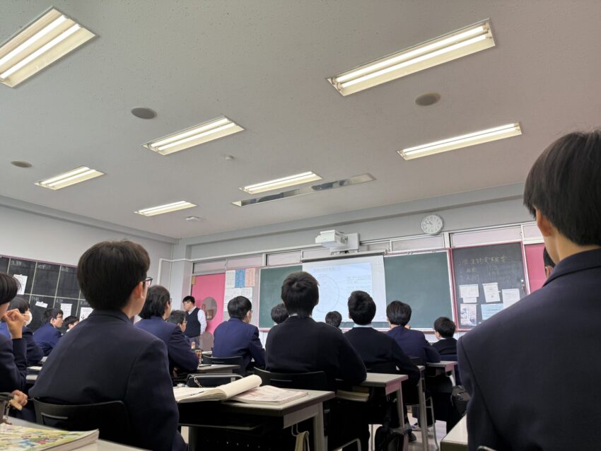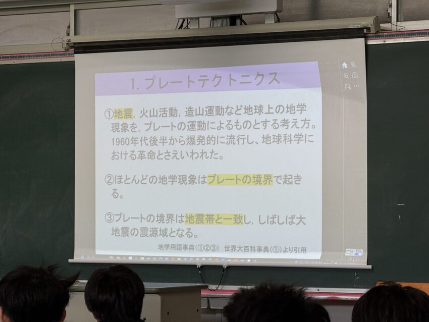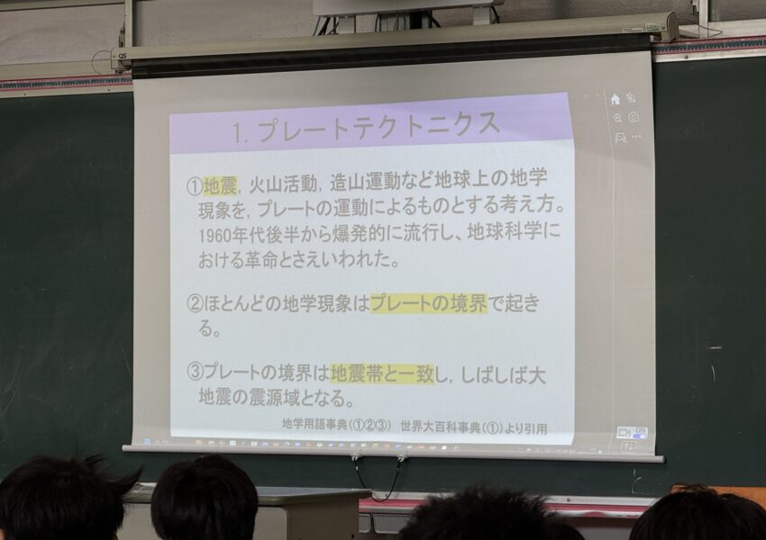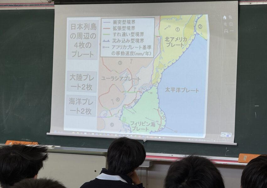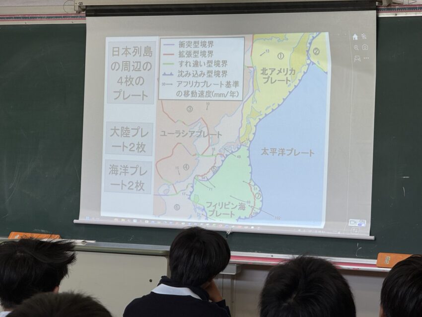 3時間目の初めに、小西教頭先生から、今年7月30日に発生したカムチャッカ巨大地震による津波警報発令時の状況についてお話があり、当日の学校の対応や、実際にどのような状況であったのかを具体的に説明してくださいました。