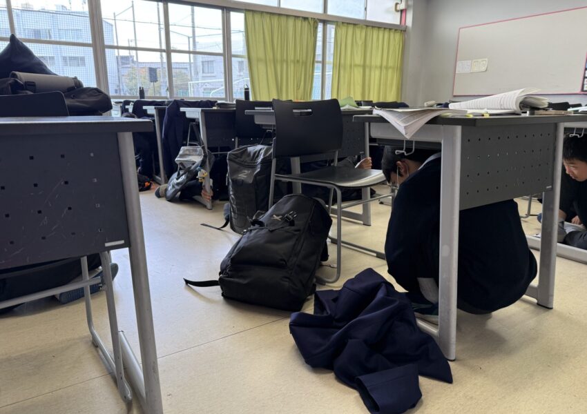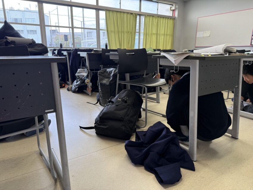 そして11時30分に4時間目が始まり、11時32分に緊急地震速報の放送が流れ、訓練がスタートしました。