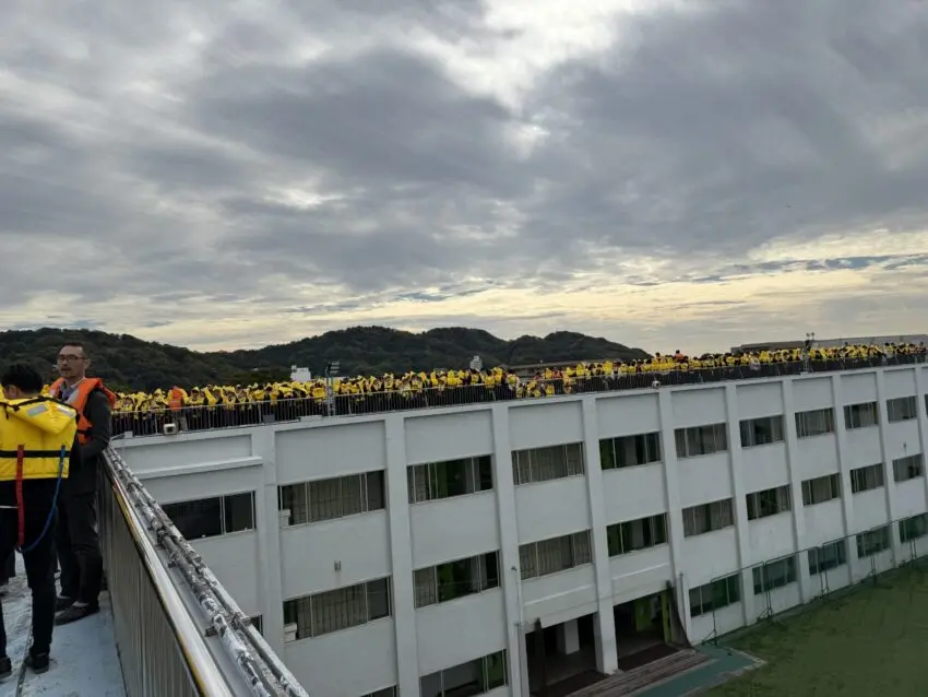 そして大津波警報発令の放送の後、屋上へ避難を開始します。
