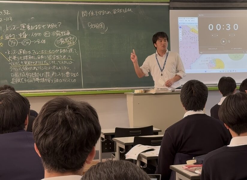 11月18日(火)、高校1年生の歴史総合の授業にお邪魔しました。この日のテーマは「アジア諸民族の独立運動・立憲運動」です。