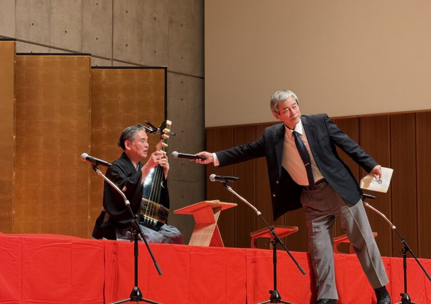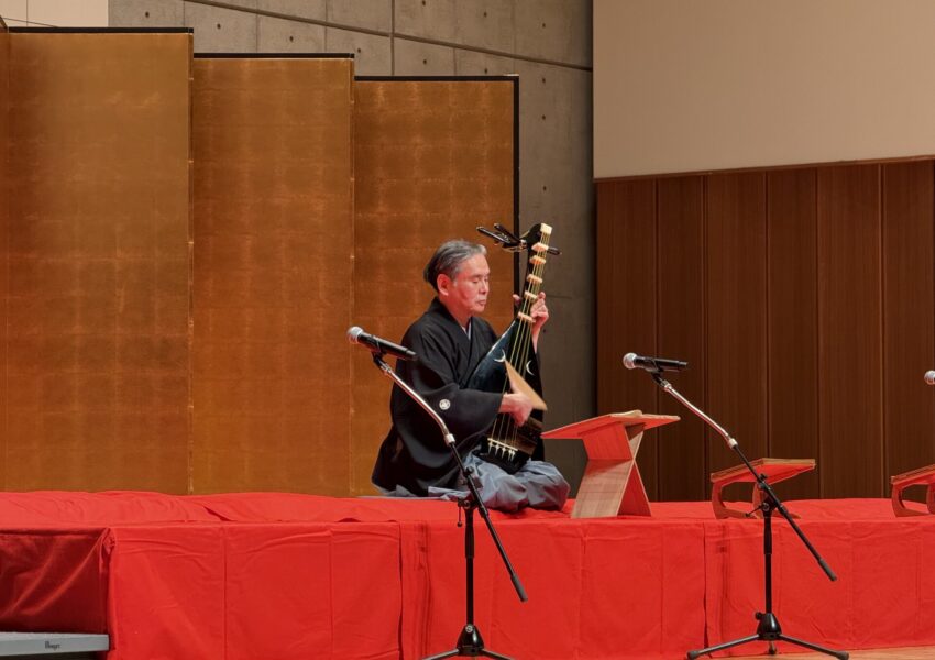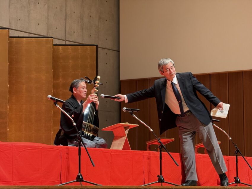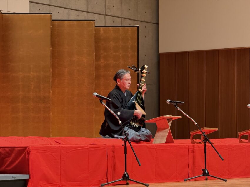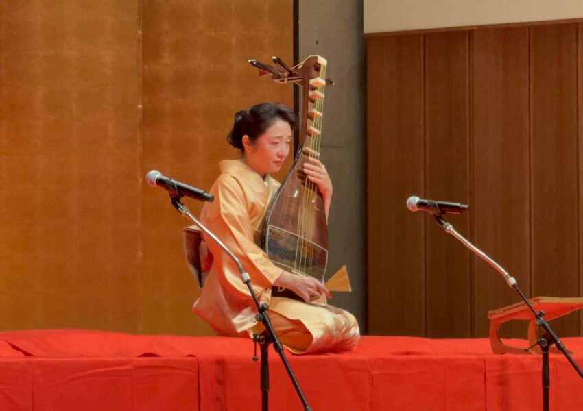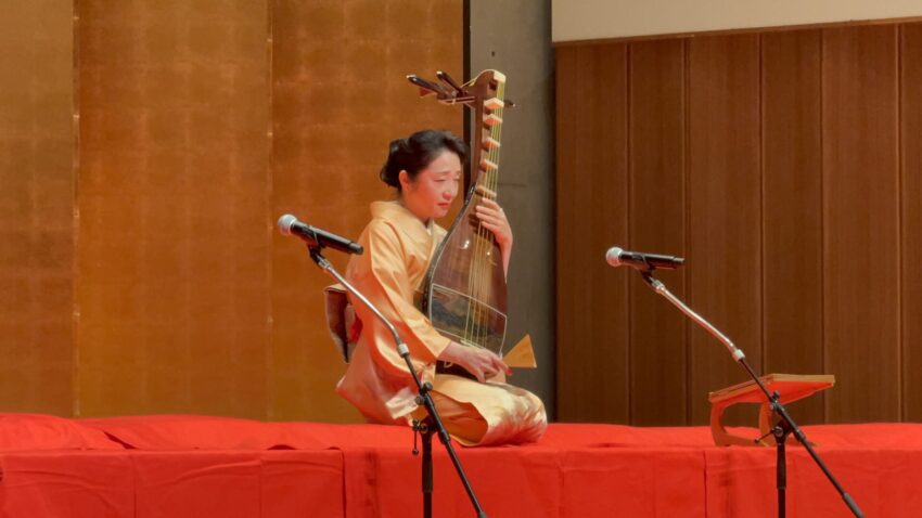 岩佐鶴丈さんは、薩摩琵琶の古典曲『崩れ』と『壇ノ浦』の2曲を披露されました。琵琶の鋭く張りつめた音色と、力強く迫力のある演奏が印象的でした。