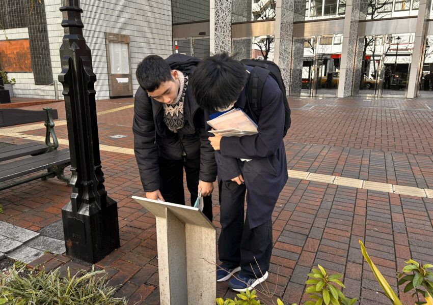 横浜には、日本の近代化の出発点ともいえる歴史や、それらを支えた近代以前の営みの痕跡が今も数多く残されています。今回のフィールドワークを通して、生徒たちは教室での学習を超え、古地図を読み解きながら現地でしか得られない情報を収集する力を養いました。