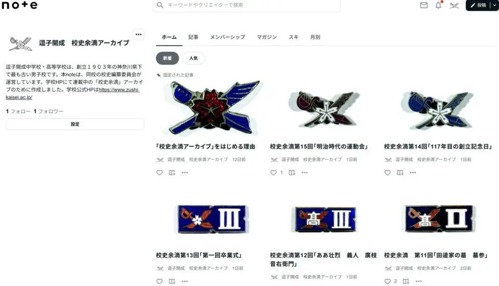 「note 逗子開成 校史余滴アーカイブ」は以下より。