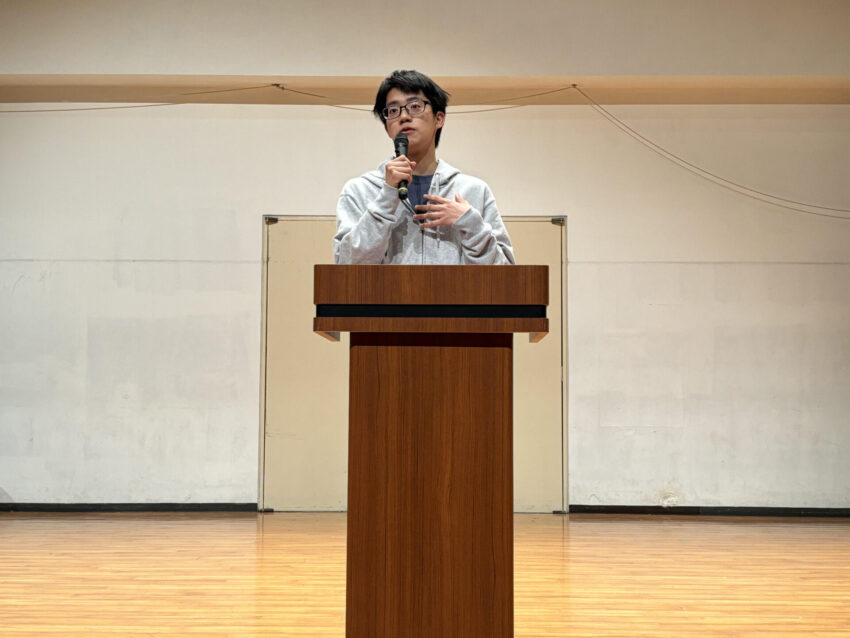私立文系を代表してN君。一人で自分を律することが難しかったので、友達と一緒に勉強することで刺激をもらった、という話が印象的でした。英語が苦手だった段階から得意になるまでの過程が具体的でとても説得力があり、同じく英語に苦手意識のある生徒たちにとってかけがえのない時間となったことでしょう。様々な機会や道具を使って自分自身で道筋をつけてやり遂げたのだな、と感じる一方で、友人や先生の話がそこかしこにでてきて、とてもあたたかい気持ちになりました。