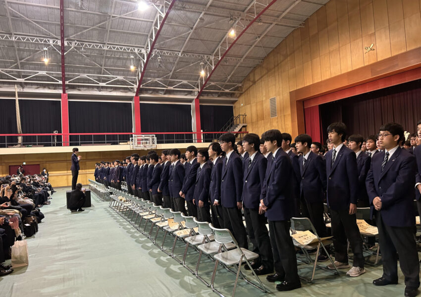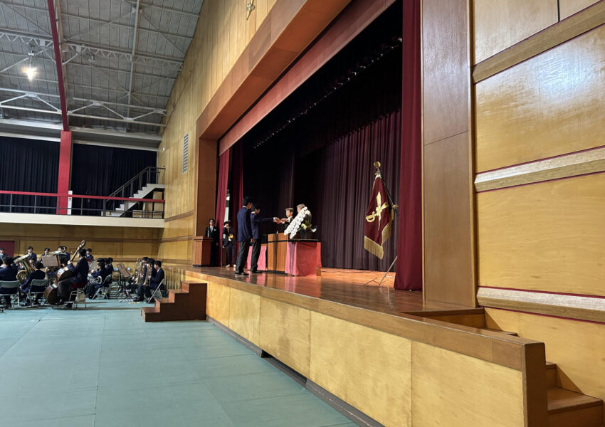 雲ひとつない青空のもとで令和5年度中学卒業式が行われました。