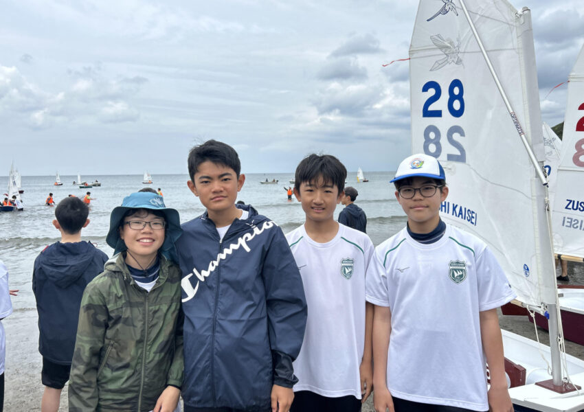 朝、海に行くと中学ヨット部が早くから準備をしてくれていました。 -