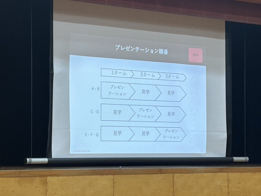 プレゼンテーションはA・B組、C・D組、E・F・G組の順で、1ターム、2ターム、3タームと進みます。