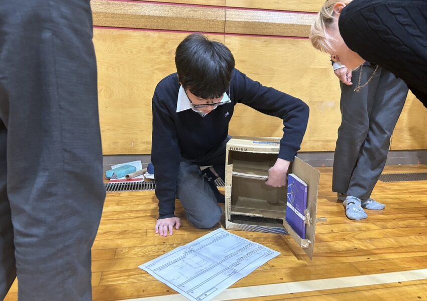 11月25日(月)、体育館では中学3年生のデザイン思考の授業が行われていました。
