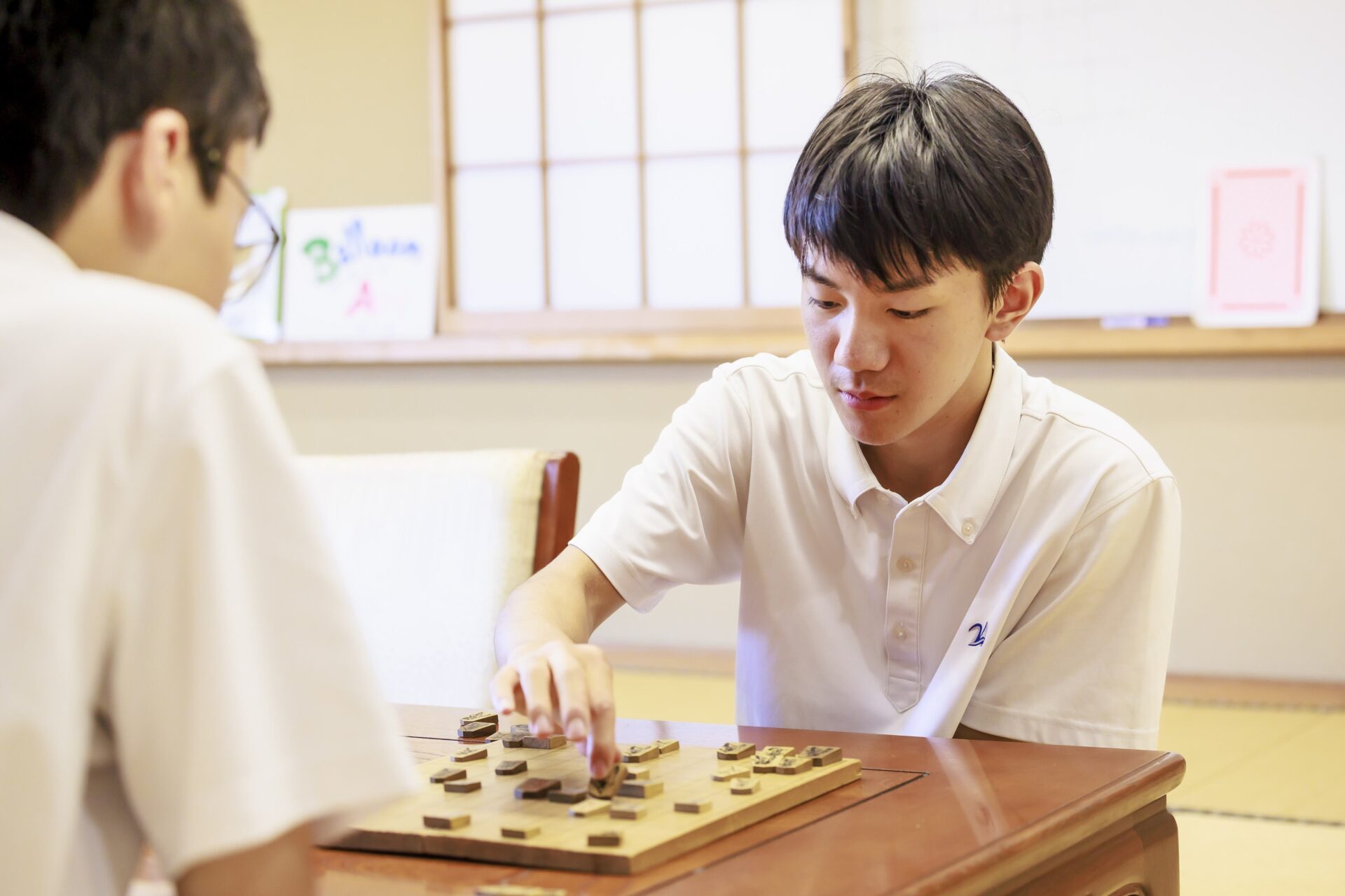 部員同士、対局や詰将棋など日々棋力向上に取り組み、東日本大会や全国大会への出場を目標に切磋琢磨しています。